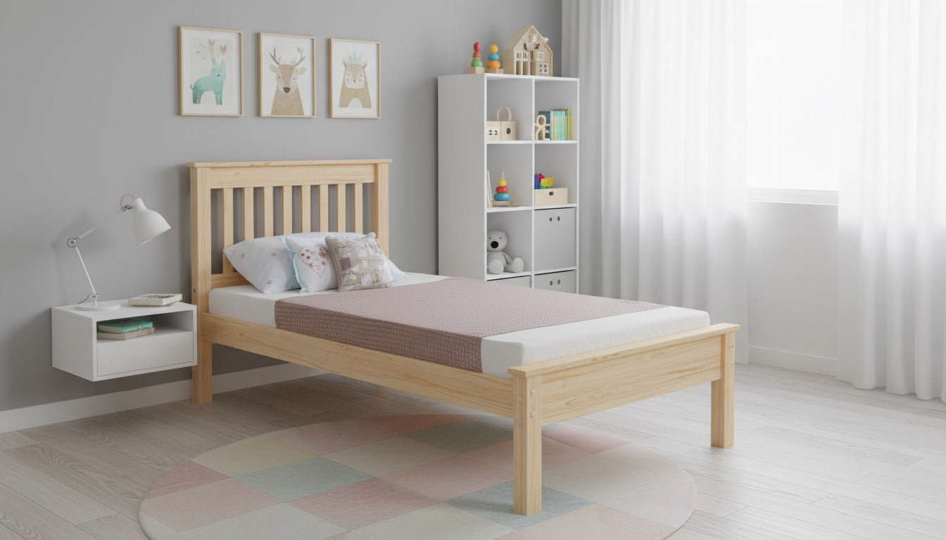Izgatavota no izturīga priedes masīvkoka, gulta nodrošina stabilu un uzticamu balstu ilgstošai lietošanai. Klasiskās, tīrās formas ļauj to viegli saskaņot ar dažādiem interjera risinājumiem no rotaļīgas bērnistabas līdz mūsdienīgai jauniešu istabai.